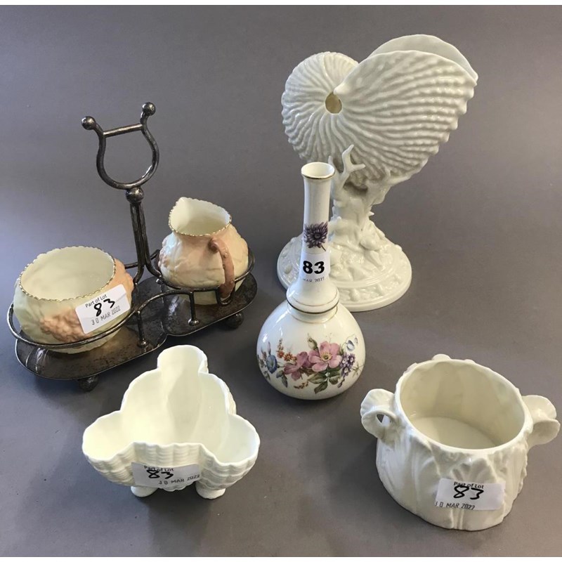 Royal Worcester Nautlius Shell and Other Items to include a Condiment Stand